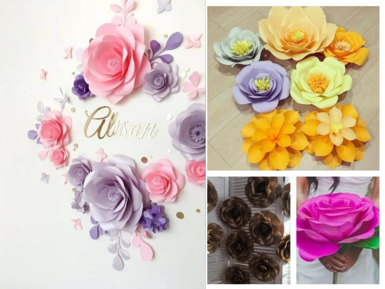 Самыми популярными считаются объёмные цветы из бумаги, изготовить которые посложнее. Однако такие украшения достойны многого, ведь так можно украсить каждое праздничное событие.