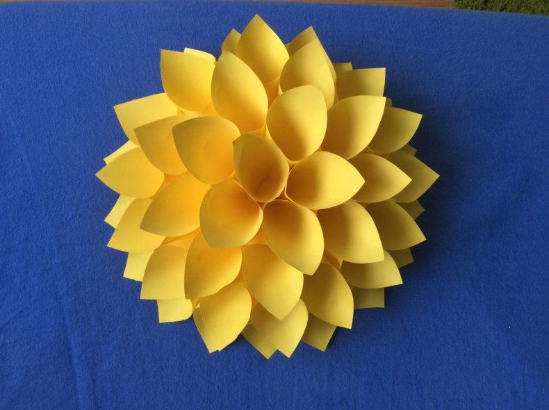 - Проводится соединение лепестков с помощью клея. На большую заготовку накладываются постепенно, те лепестки, что поменьше. Так соединяются все лепестки.