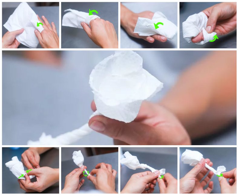Если таковой нет, тогда можно взять обычные салфетки, а также нитки, бечёвку и ножницы.