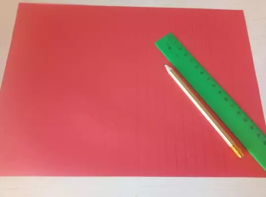 - Из цветной бумаги нужно нарезать 14, 12,10 и 8 штук полосок соответственно разного цвета, длина 10 см, а ширина 1 см;