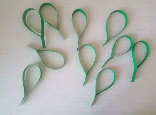 - Нужно сложить полоски каждую вместе и склеить их с двух концов, чтобы получилась объемная капля;