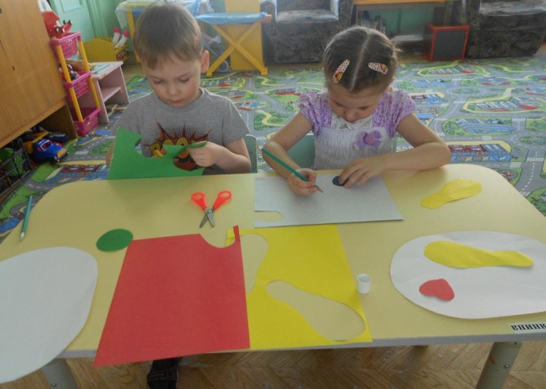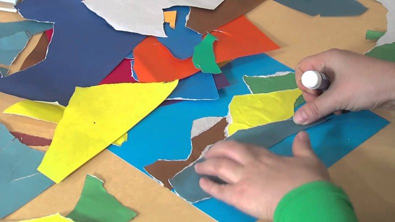 Одним из простых и доступных методов работ является аппликация – вырезаются элементы и приклеиваются в определенном порядке к листу, формируя какой-то сюжет или фигуру. Проще всего получаются аппликации из бумаги.