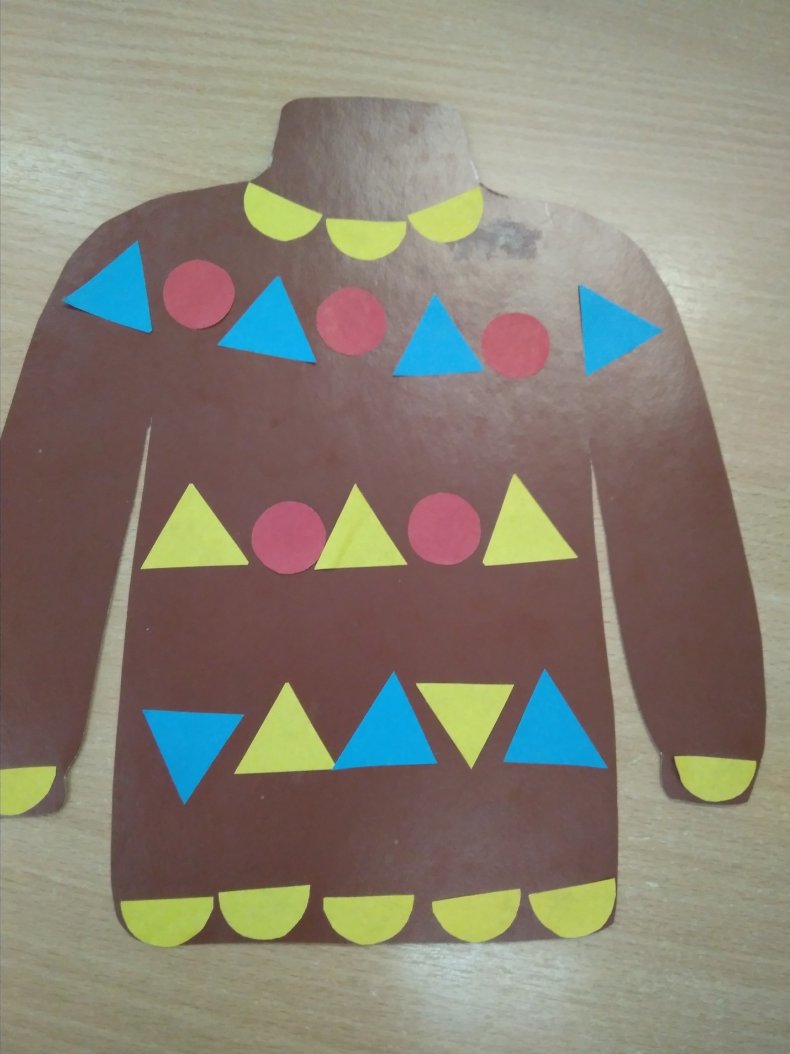 - Из цветной бумаги нужно вырезать шарфик, шапочку и рукавички по шаблонам. Можно нарисовать их самостоятельно, можно взять трафареты в Интернете;