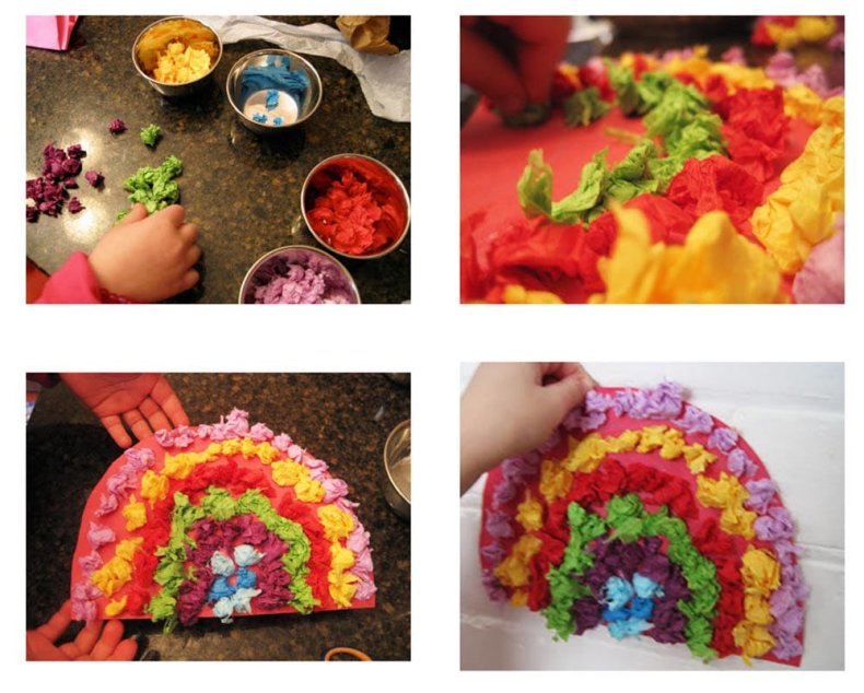 Также один из простых вариантов, который можно выполнить вместе с детьми. Понадобится цветная бумага, клей, белый лист и маркер.