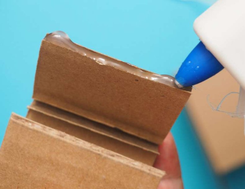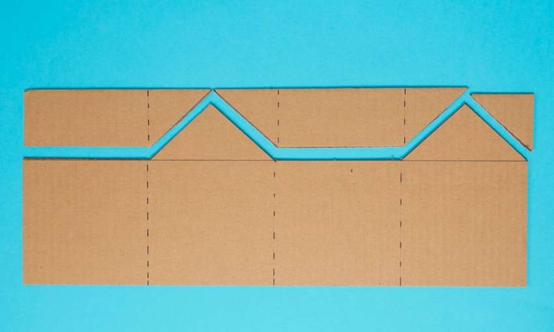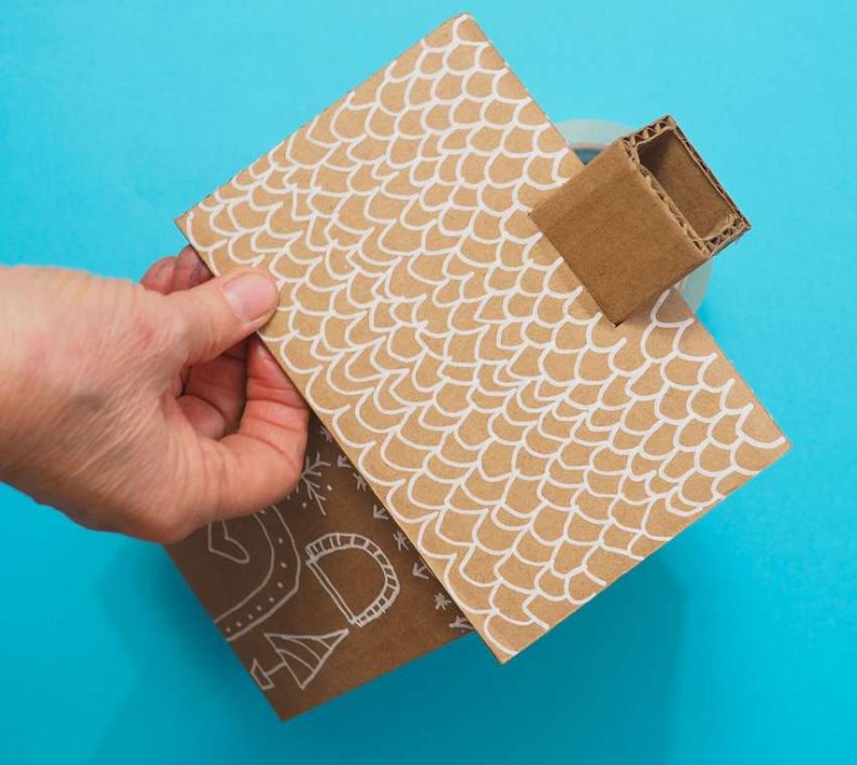 - Из крышки от коробки создать крышу, скрепить части дома степлером или клеем.