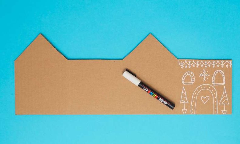 - Расписать внешнюю сторону разнообразными узорами, например: на 23 февраля нарисовать танк, флаг России и звезды; на 8 марта – нарисовать большую восьмерку, приклеить небольшие цветы рядом; на Новый год – ёлку, снеговика, рождественский носок и так далее.