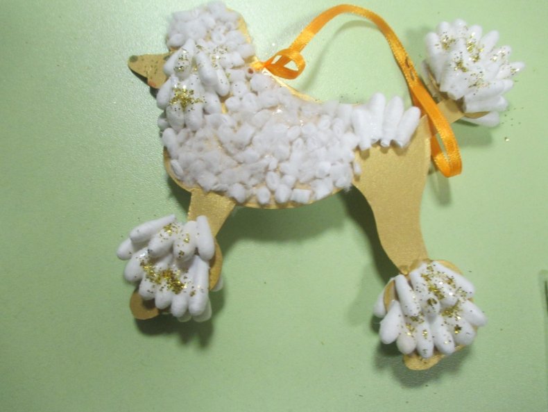 - Промазать силуэт ПВА клеем и приклеить к нему ватные шарики.