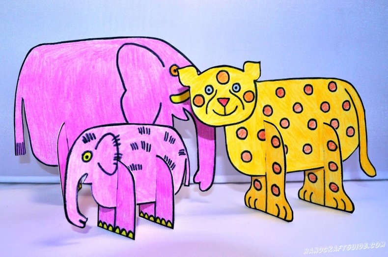- Поделки по шаблону – распечатанное изображение картинки, которое нужно вырезать, сложить или склеить по инструкции, например пирамидку.