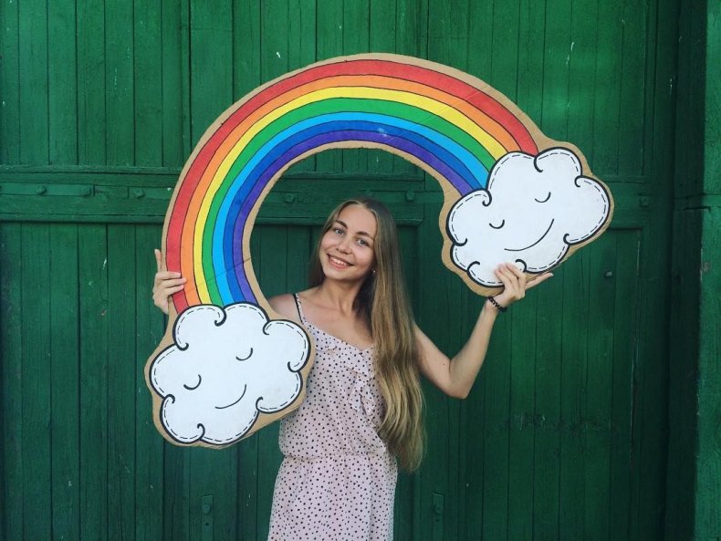 - Скрыть один край радуги облачком, а другой солнцем с лучами треугольной формы.