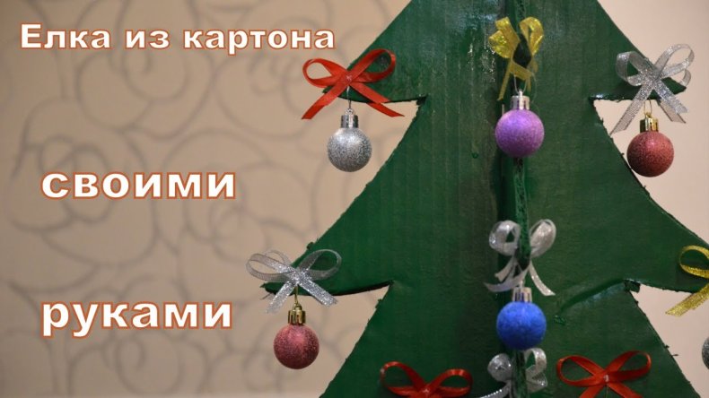Приложить шаблон елки к картону и обвести, вырезать по контуру.