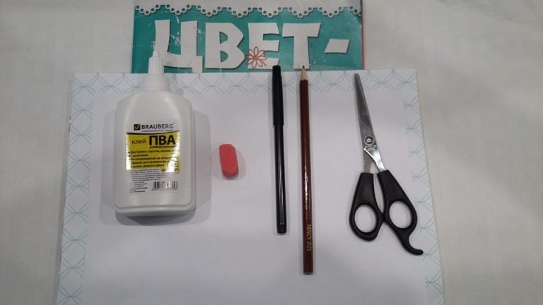 Несмотря на то, что основными материалами являются бумажные изделия, работать без применения ножниц, клея и других принадлежностей не получится.