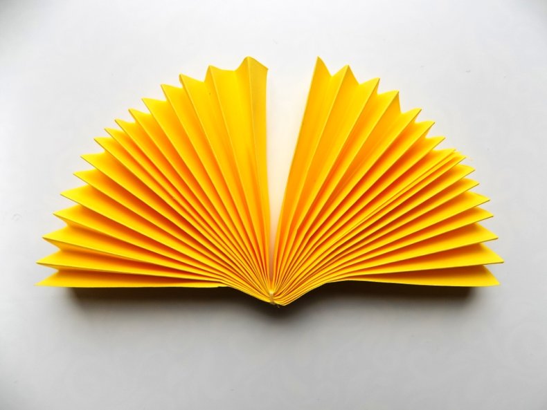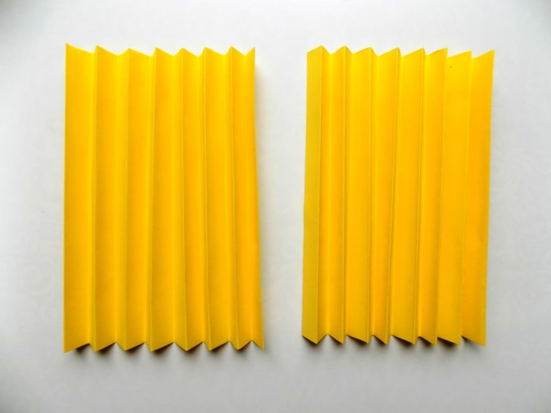 Нарезать цветной лист бумаги на 8 полосок, сложить их гармошкой.