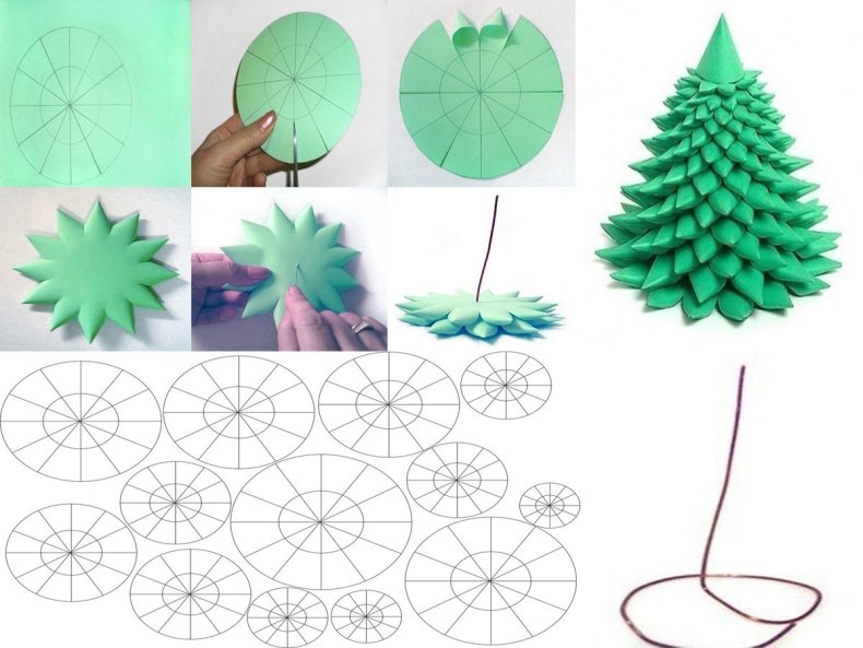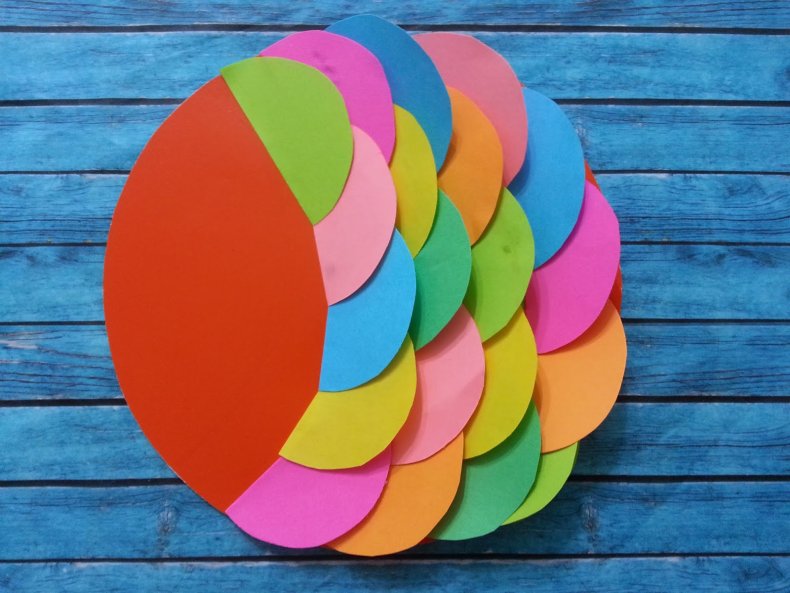 - Вырезать полукруг из зеленой бумаги диаметром тоже 20 см.