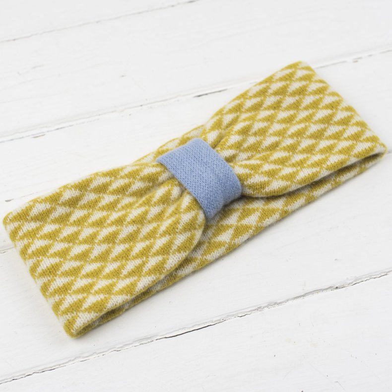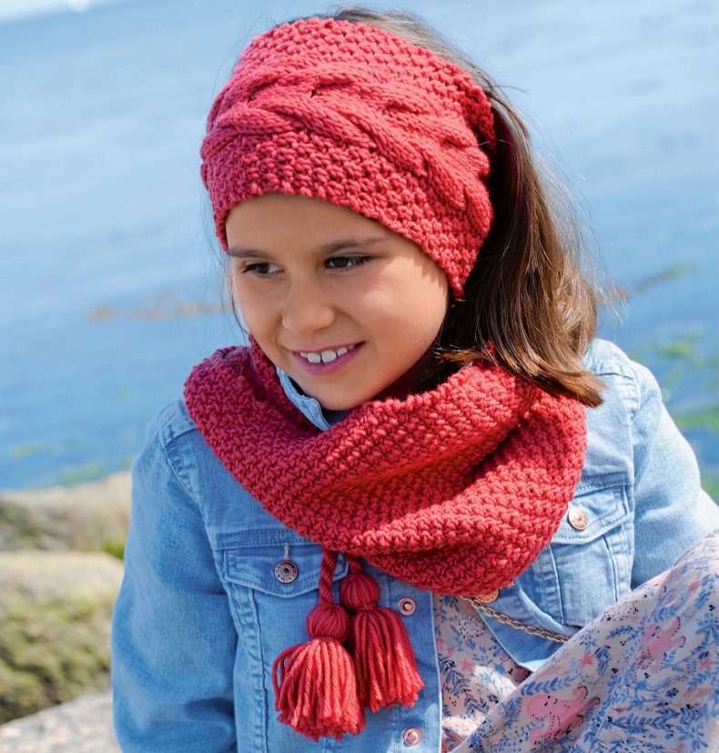 - Повязка может иметь один и тот же цвет, узор, что и шарф, перчатки.