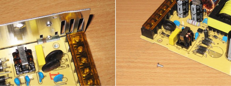 Важно! Нужно помнить, что в подключенных к сети импульсных блоках питания, по всем проводящим цепям, курсирует ток высокой мощности. Случайное касание их человеком может стать причиной серьезной травмы.