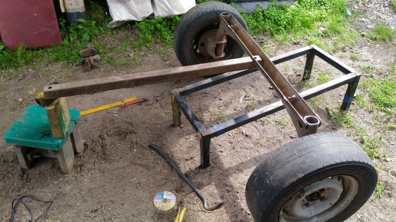 - С помощью варочного устройства приваривается стойка для колес. Стойки будут иметь высоту от 30-45 стоек, продолжающиеся до оси колес.