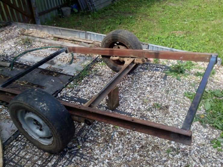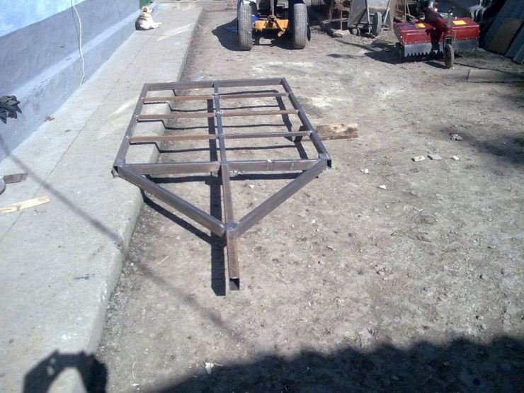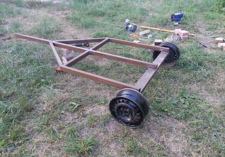 - Изготовить раму можно легко из труб стального происхождения материалов. С помощью сечений прямоугольного вида происходит фиксирование сварочным аппаратом углов прицепа.