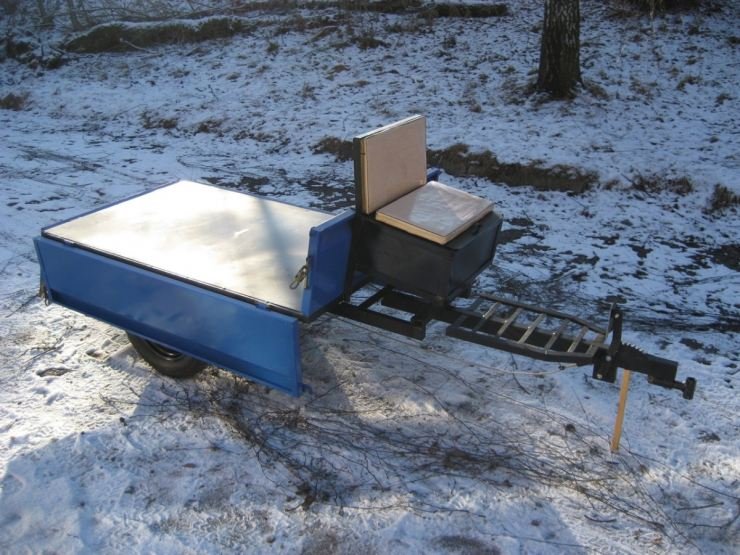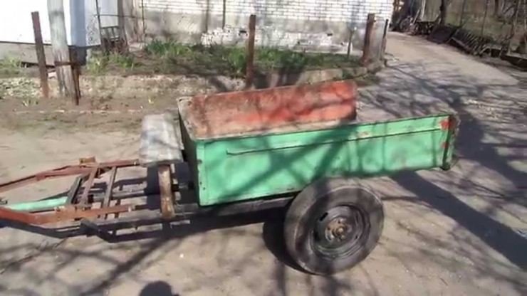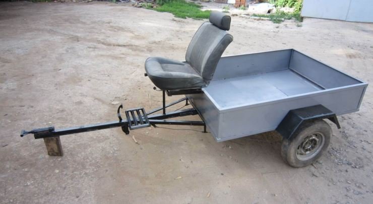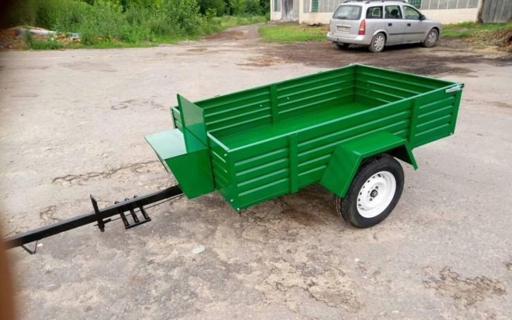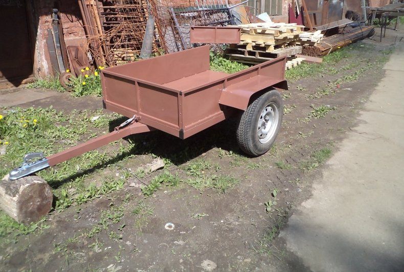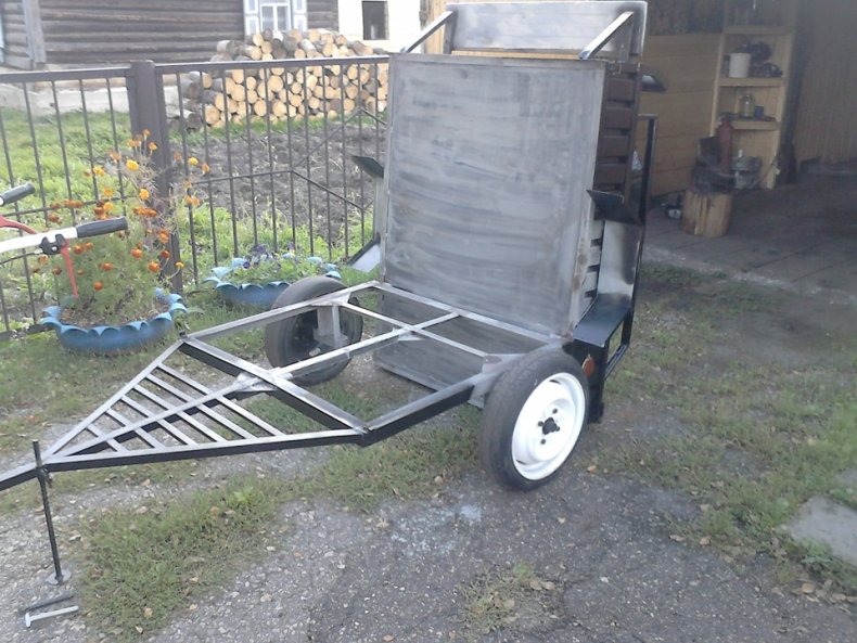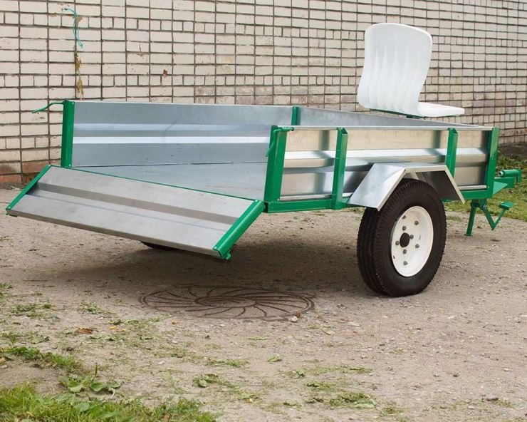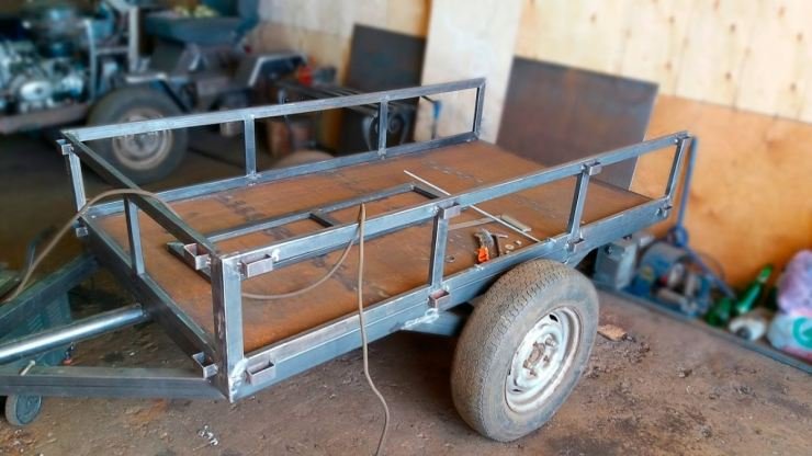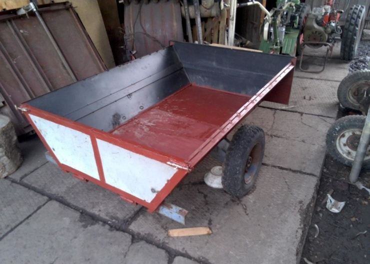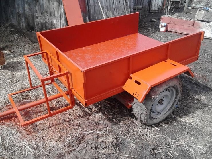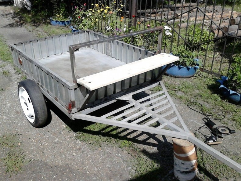 - Доступным и универсальным типом послужит прицеп, выполненный из листа металла. Чтобы прицеп в долговременной перспективе прослужил намного дольше, рекомендуется покрыть его поверхность грунтом.
