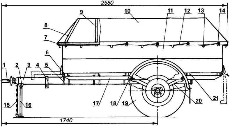 - Прицеп, выполненный из дерева, рекомендуется фиксировать по углам с помощью металлических заклепок. Э то гарантирует устойчивость и прочность кузову. Закрепить необходимо металлическими болтами с ручками.