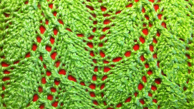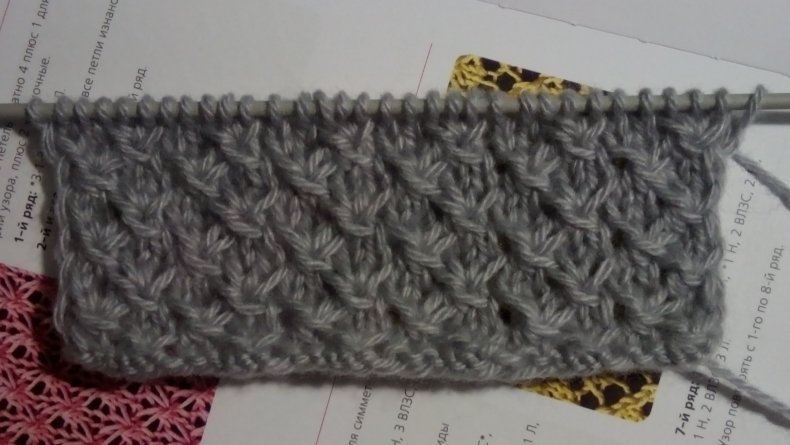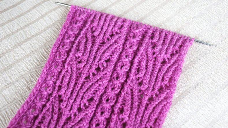 Красивый, интересный узор, для создания которого необходима дополнительная спица.