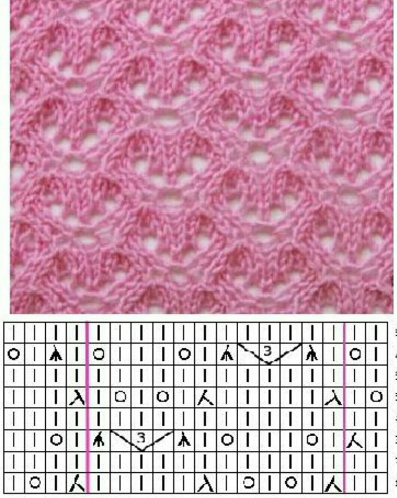 Легкий, необычный узор вяжется обычными петельками, которые чередуются в нечётных рядах, а чётные ряды вяжутся по рисунку.