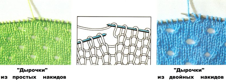 Наберите нечетное количество петель. Снимаем кромочную петельку, затем вяжем 1 лицевую, на спицу накидываем нить (так называемый накид) и переносим 1 нить, не провязывая. Повторяем раппорт до конца ряда. Продолжаем далее по той же схеме до желаемой высоты.