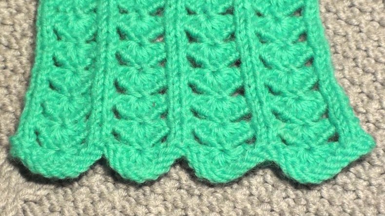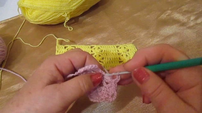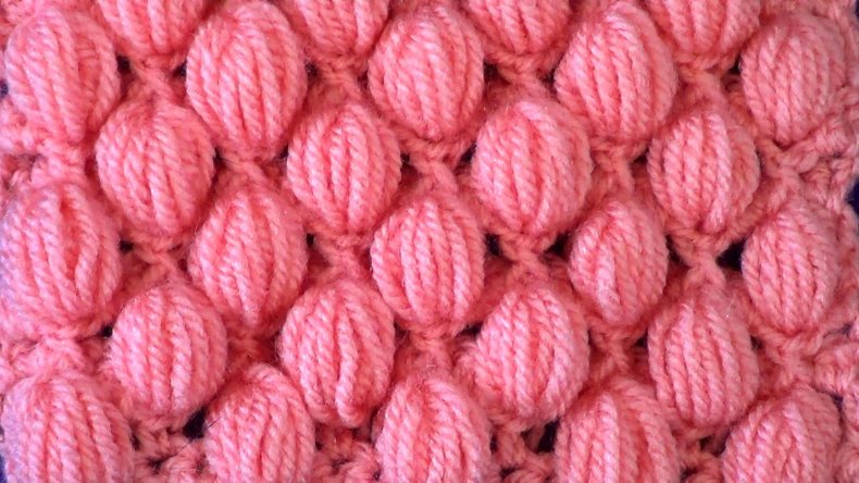 - 5 ряд: Сделайте выпуклость из 5 петелек и переверните полотно после их создания. Делайте прибавления через одну.