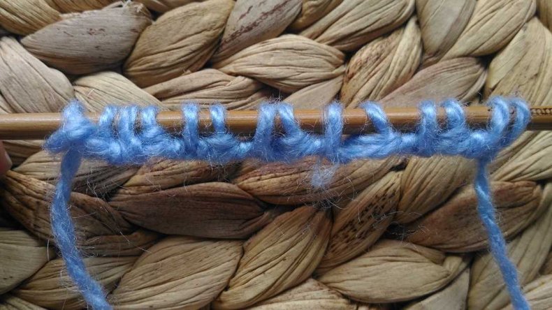 - 2 ряд: все петельки лицевые.