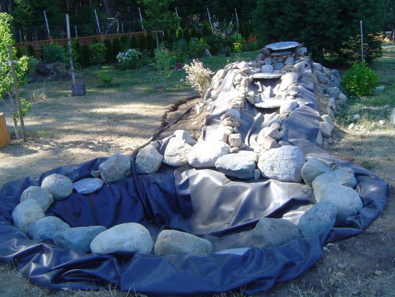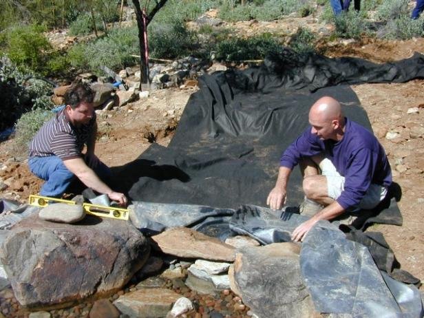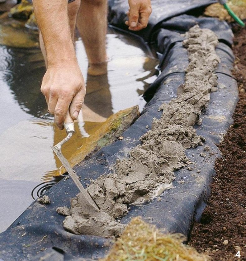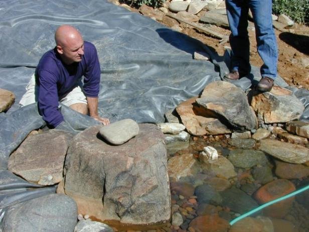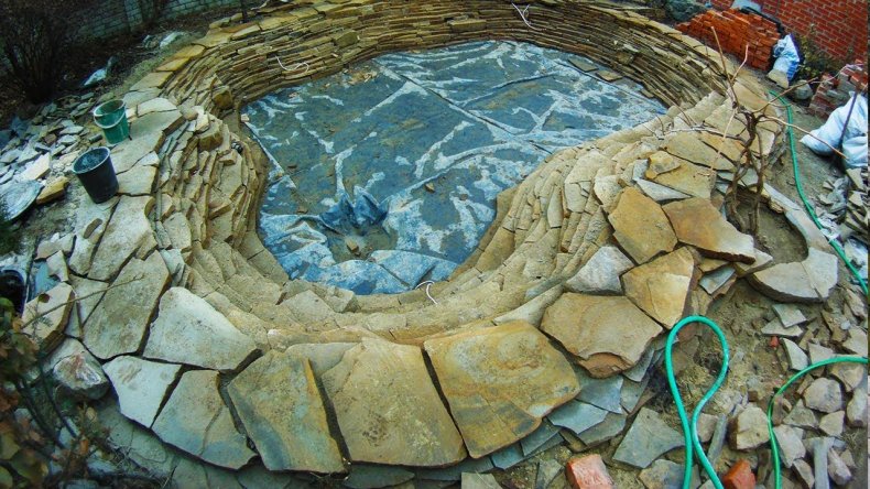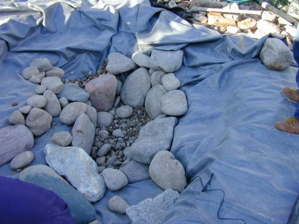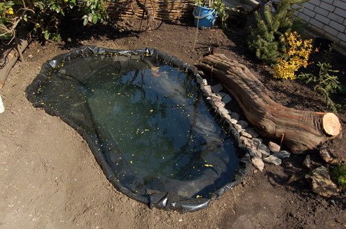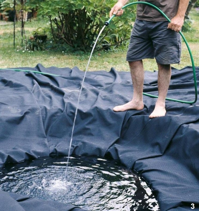 Потом можно заполнить пруд водой наполовину и оставить на 24 часа, за это время вода лучше придавит пленку к рельефу дна.