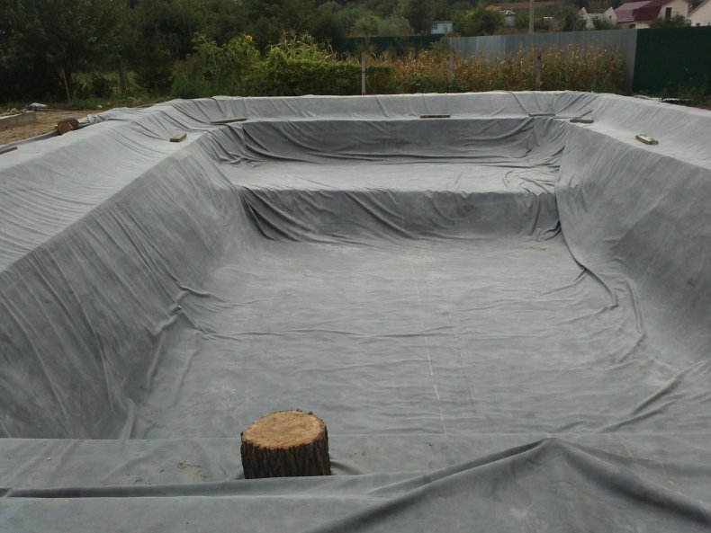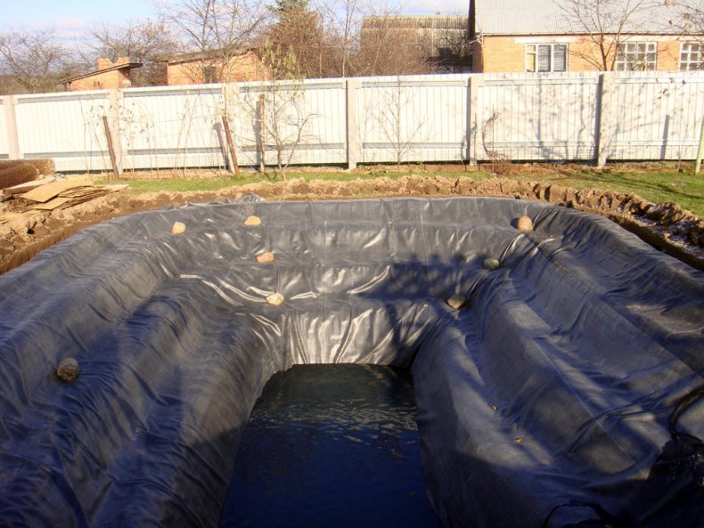 Важно! Желательно застилать котлован пленкой в жаркий солнечный день, тогда пленка размягчится, поэтому она с легкостью будет облегать все неровности и лучше прилегать к поверхности.