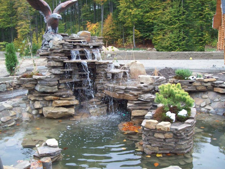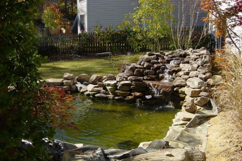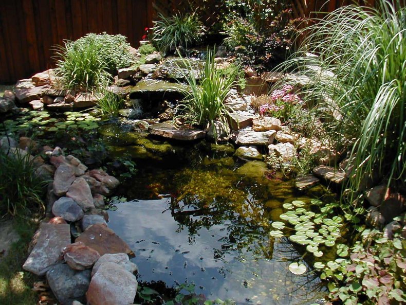 - Выбирая место для пруда на открытом пространстве, чтобы деревья находились подальше. Если обустраивать пруд прямо под деревьями, то вы устанете очищать его от листвы.