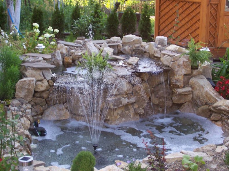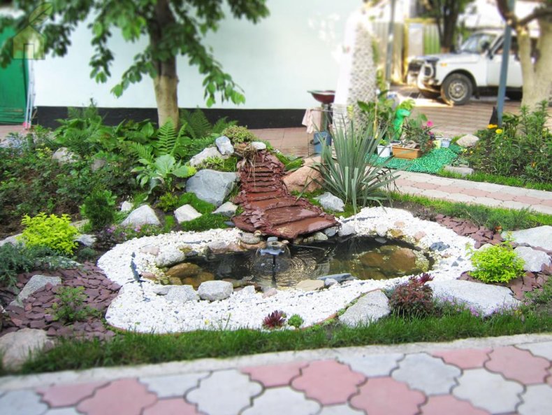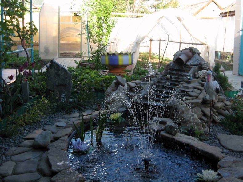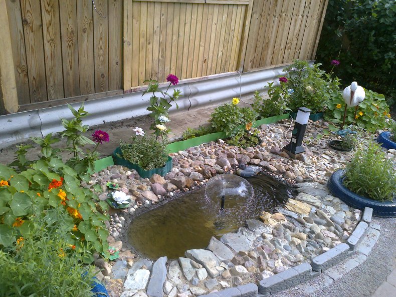 - Небольшой прудик – он отлично украшает сад, он очень круто будет дополнять вашу цветочную оранжерею.