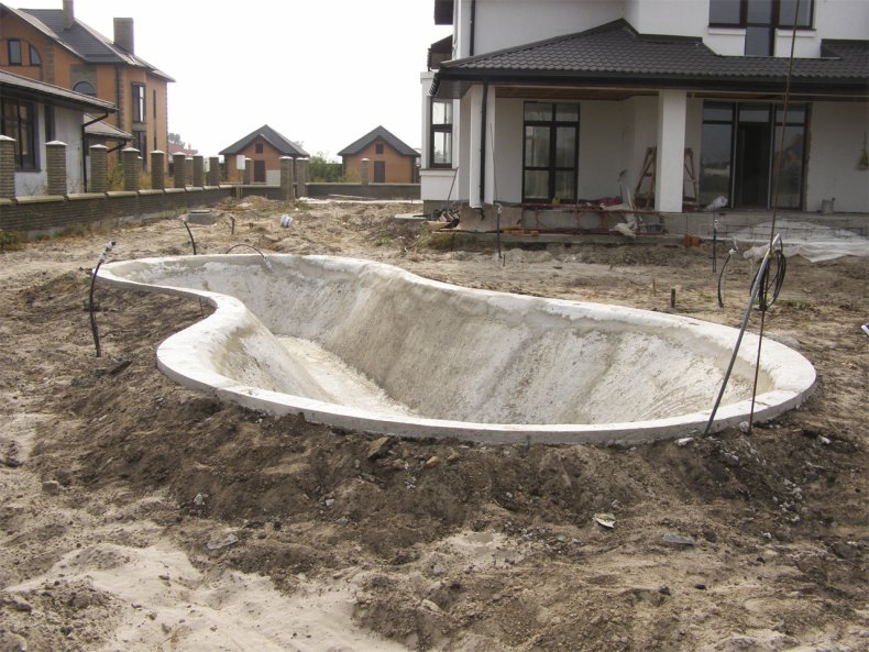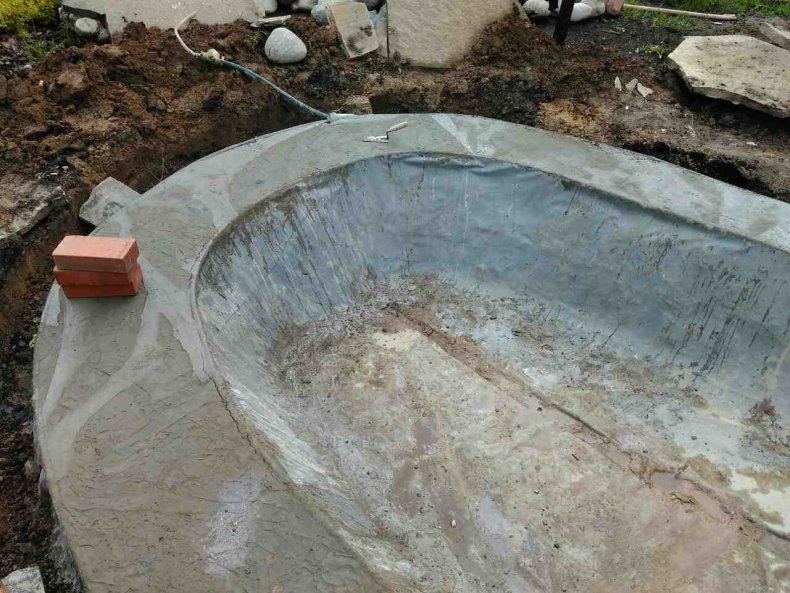 Бетонная основа. Основание из бетона – это самый дорогостоящий способ создания пруда, но он гарантирует длительный срок эксплуатации (15-20 лет). Обычно к такой основе прибегают при создании плавательного бассейна на участке.