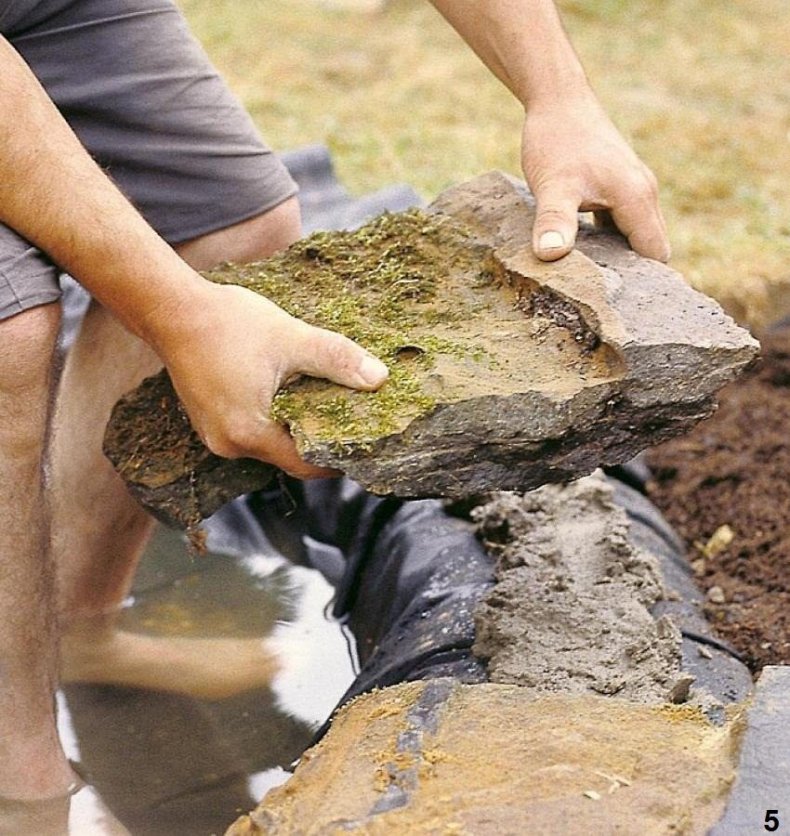 - Выкладывать листы пленки надо так, чтобы они складывались лесенкой навстречу друг друга. Необходимо это для того, чтобы вода по мере наполнения пруда герметизировала стыки своим весом.
