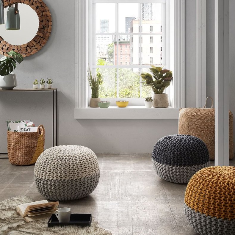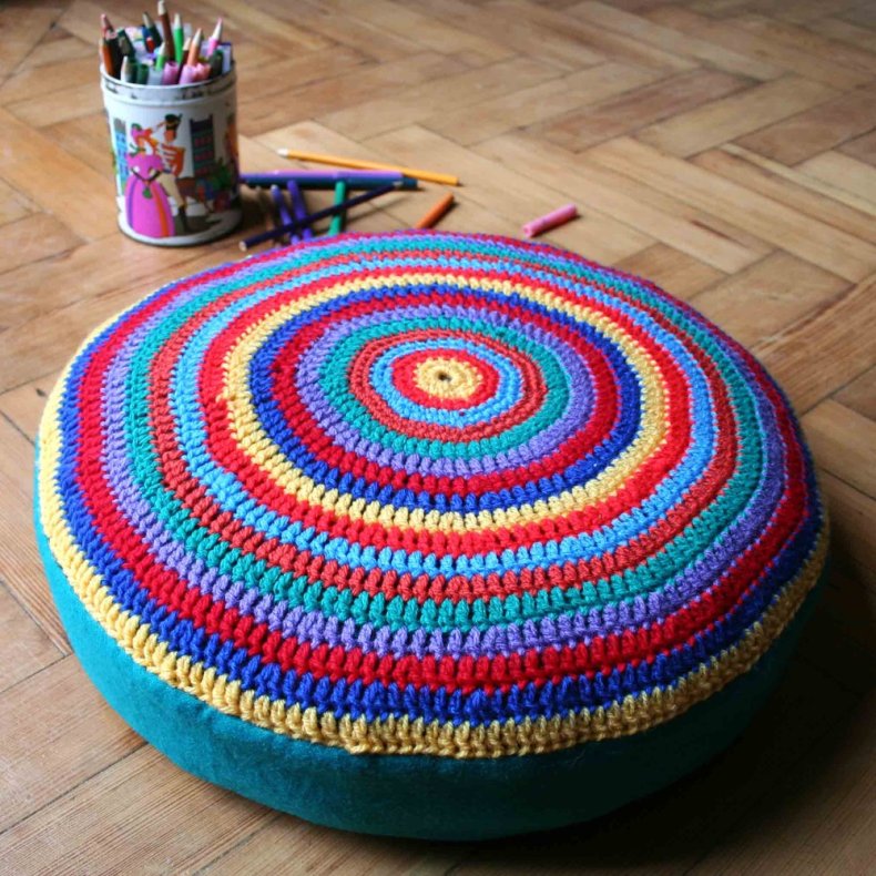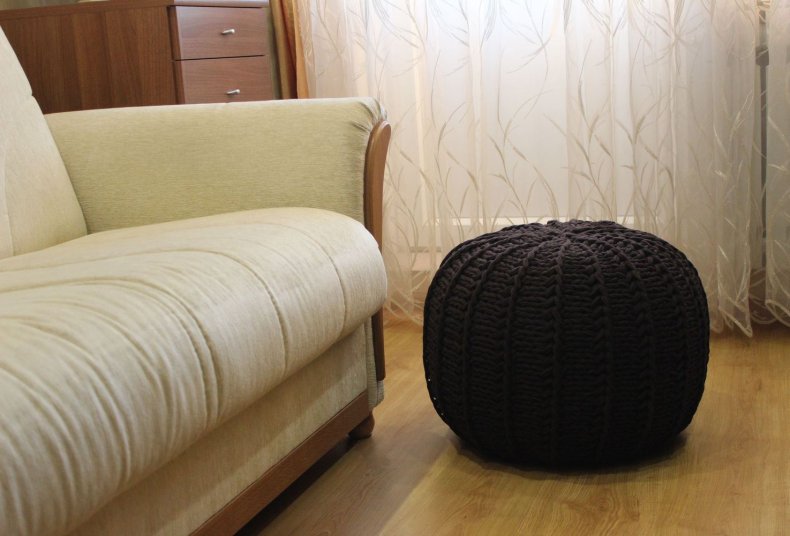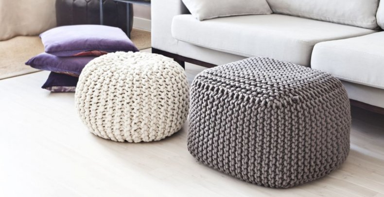 Известно, что вязаные вещи создают теплую уютную атмосферу в доме. Почему бы не применить навыки вязания в создании пуфа?