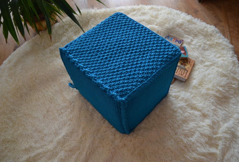 - Продолжать вязание до тех пор, пока пуф не достигнет нужной высоты.