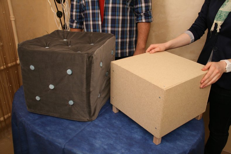 В отличие от предыдущих вариантов создания пуфа, в этом мастер-классе основа для будущего элемента интерьера уже готова. Конструкция табуретки послужит силовым каркасом и придаст прочности пуфику.