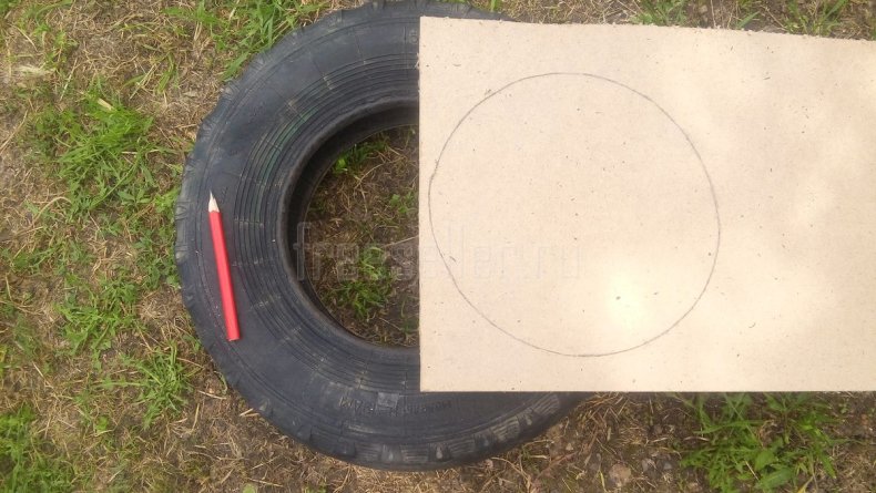 - Из фанеры вырезать круг необходимого диаметра – это и будет будущее сидение.