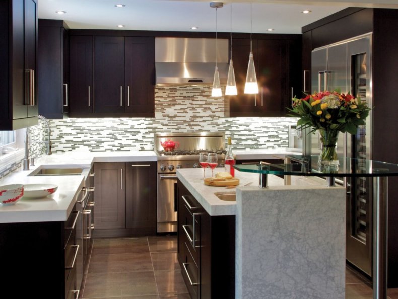 - Современные кухни в стиле модерн предполагают обилие блестящих поверхностей и глянца;