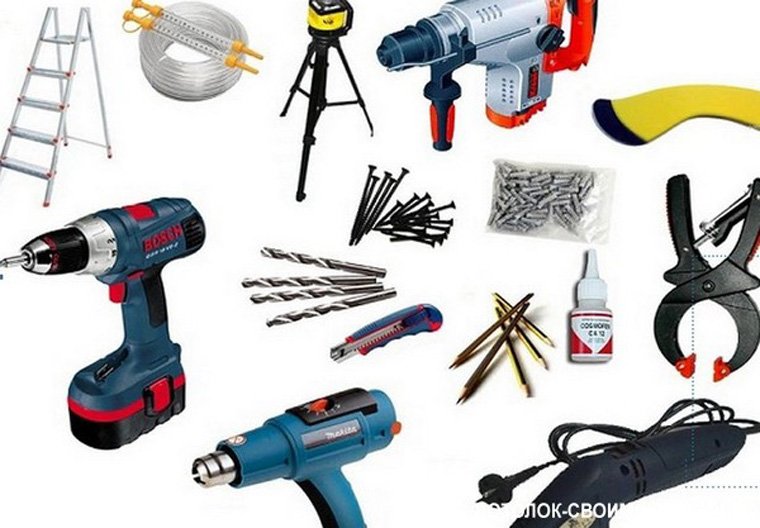 Здесь перечислен основной инструмент, который понадобится для большинства типов работ. Когда запланировано покрытие с помощью ПВХ панелей, то пригодится и другой инструментарий.