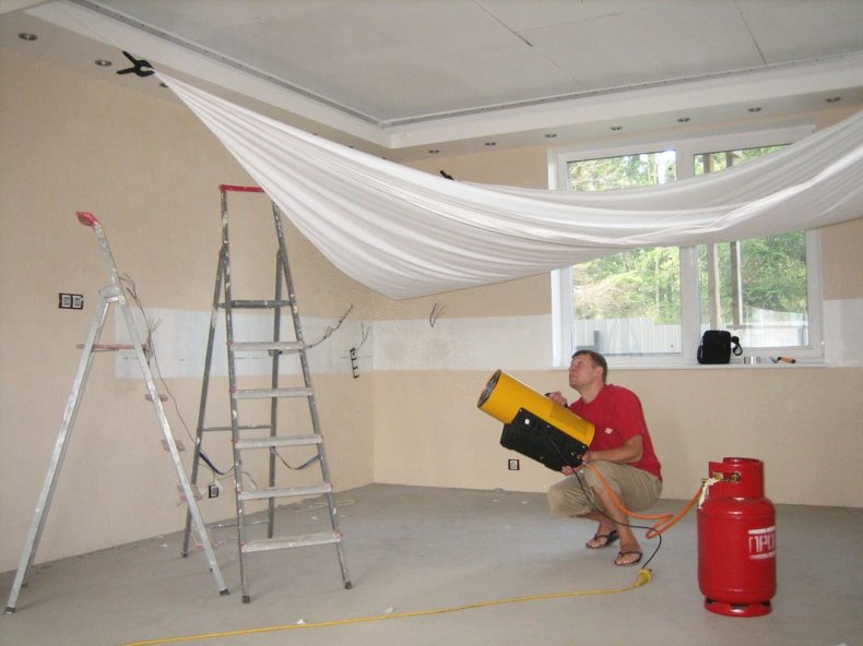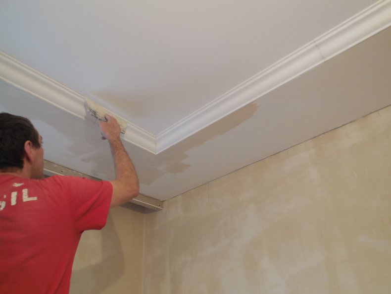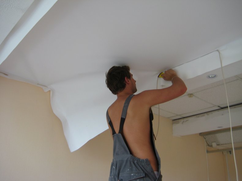 А потом умелые руки и навыки работы с инструментом сделают своё дело. Чтобы потолок сохранял эстетичный вид длительное время его нужно спустя время ремонтировать.