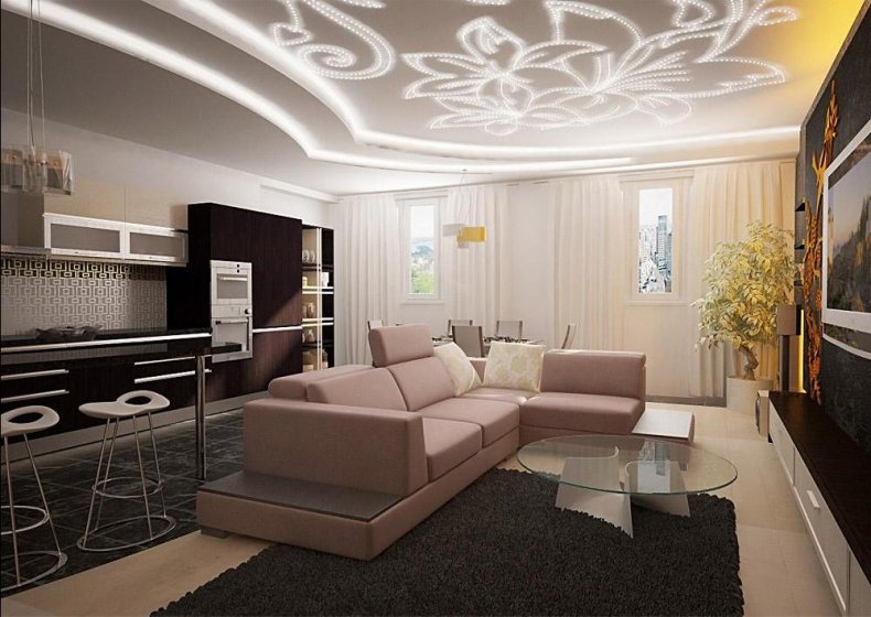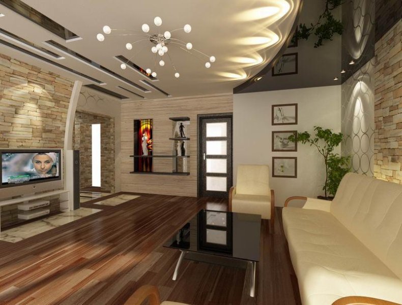 Основываясь на выбранном дизайне – типы ремонта в помещении способны различаться. К этому относится несложный вариант отделки, так и многоуровневая конструкция.