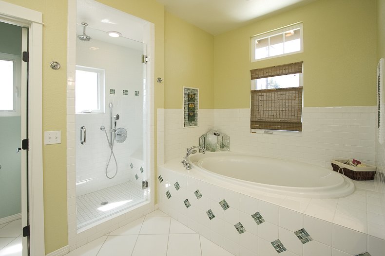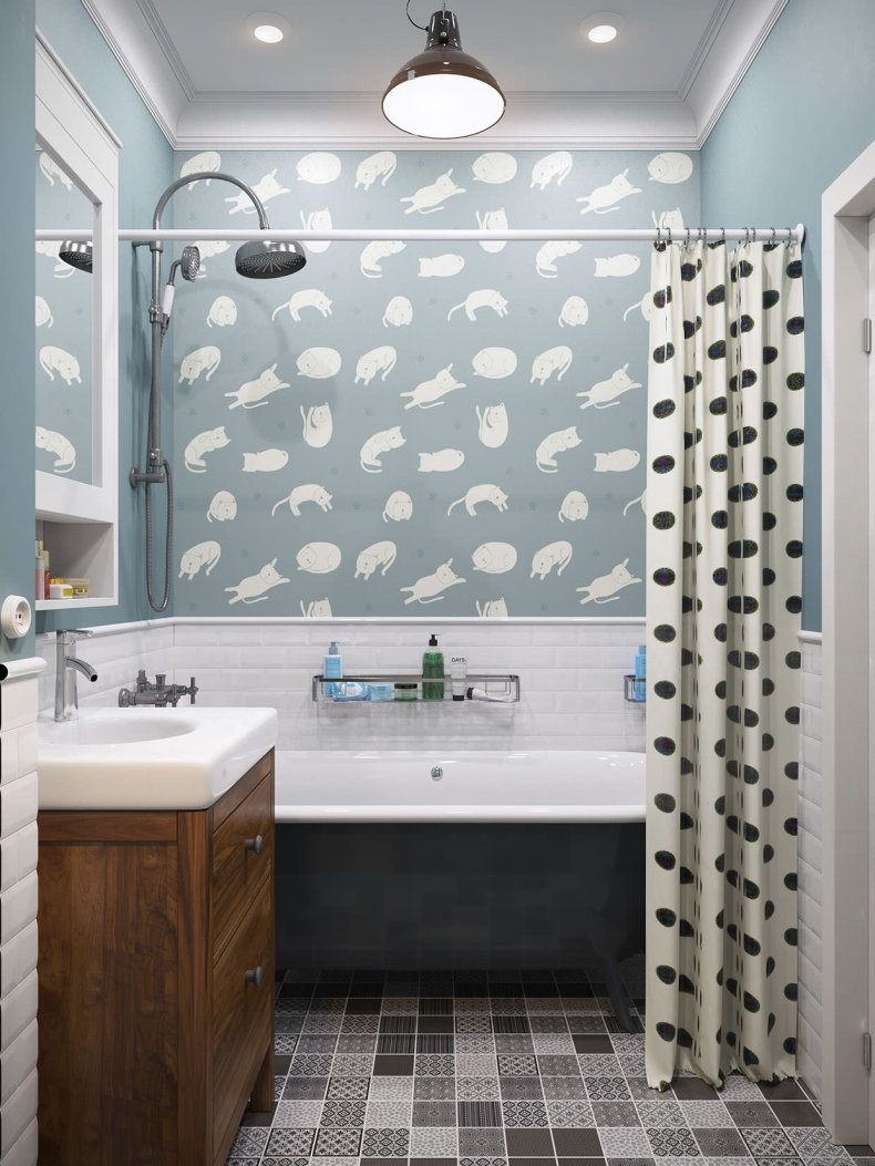 Главным условием в выборе обоев является их влагостойкость и моющиеся свойства. В любом случае там, где находится ванна, лучше уложить плитку, это поможет продлить срок службы обоев.