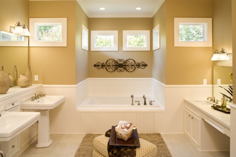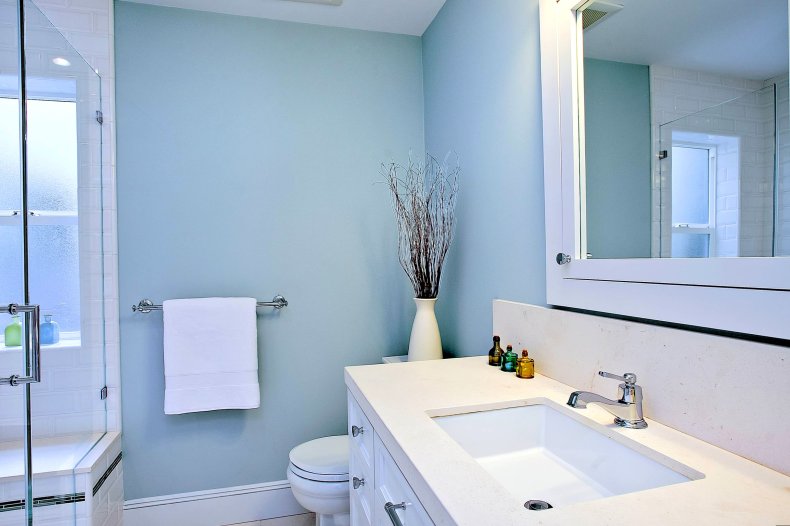 - Выбирая краску для ванной комнаты, нужно обращать внимание на влагостойкие варианты, содержащие в своём составе антибактериальные вещества.