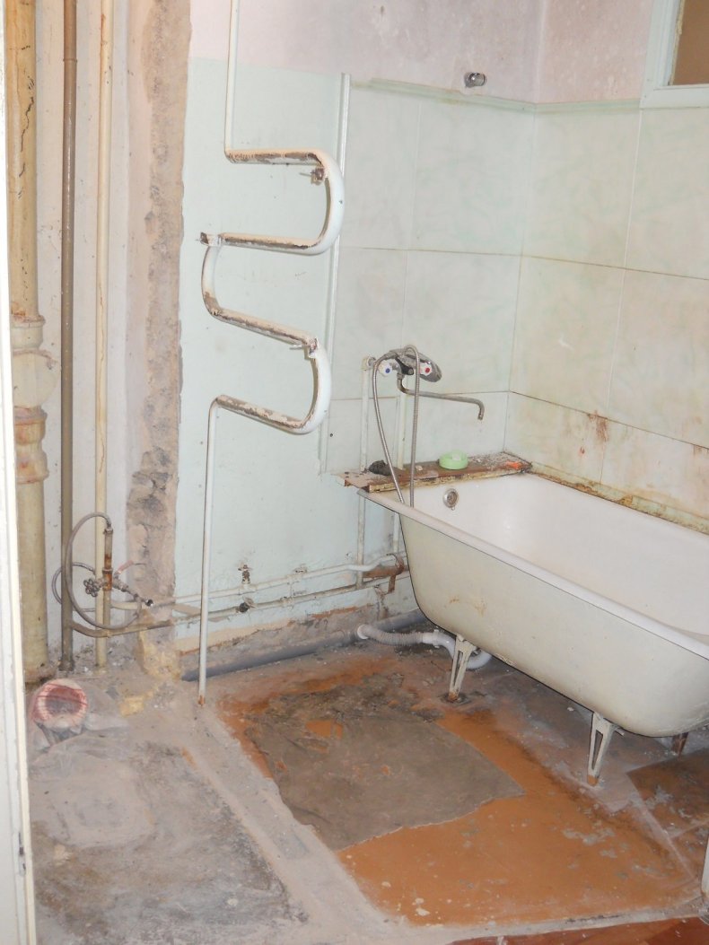 Подготовительный этап ремонтных работ заключается в освобождении помещения от мебели и, если возможно, то и от сантехники. Проводится тщательный осмотр коммуникаций.
