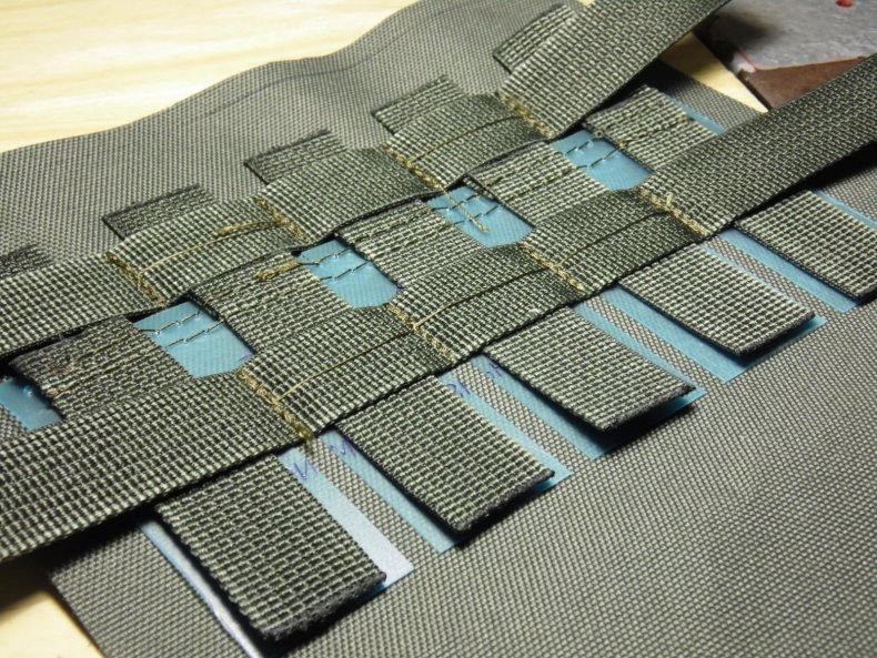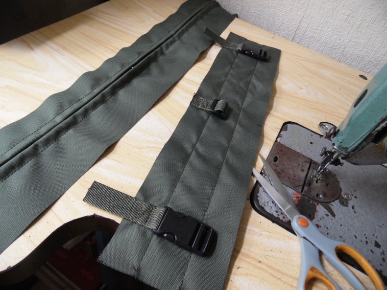 - Пришитые лямки рекомендуется утолщать с помощью уплотнителя. На концы присоединить фиксаторы длины и держатели