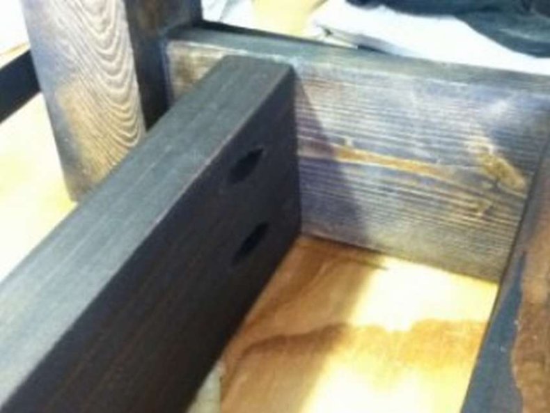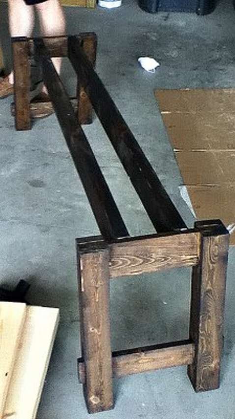 - Присоединяют бруски к чурбанам, спинка скамьи будет высотой этих самых брусков.