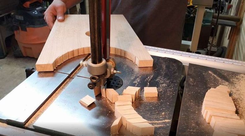 - Выпиливают углубления на чурбанах для сиденья, чтобы это сделать, меряют диаметр бревна и делают надрезы.