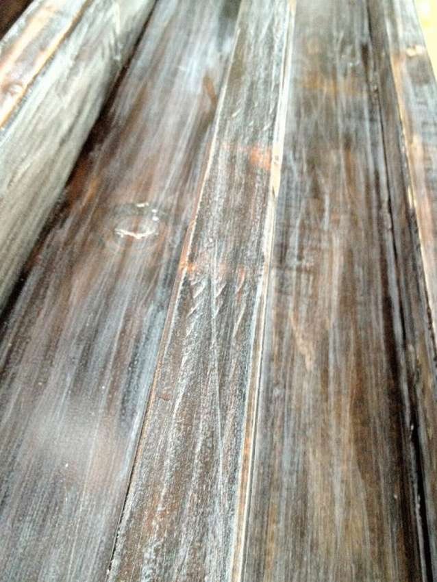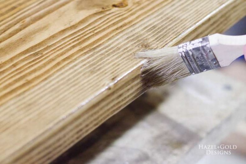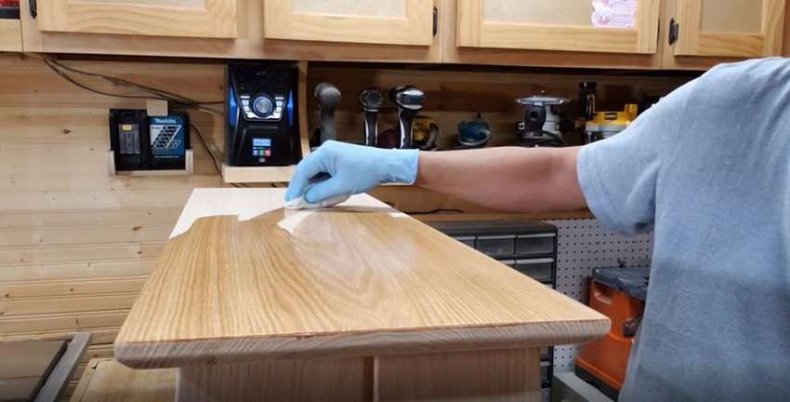 В работе с деревом достаточным будет купить краску для обработки столешницы и акриловый лак.