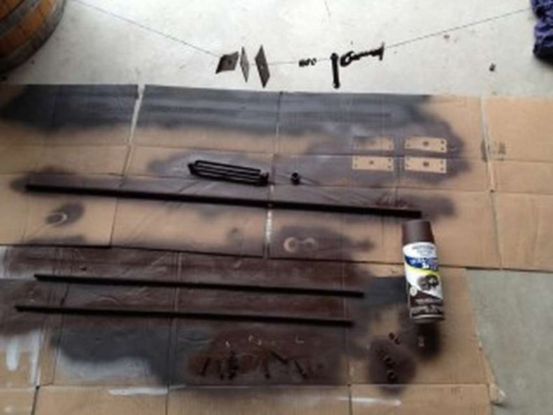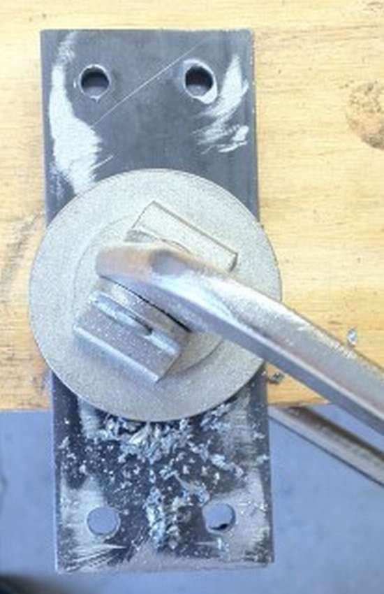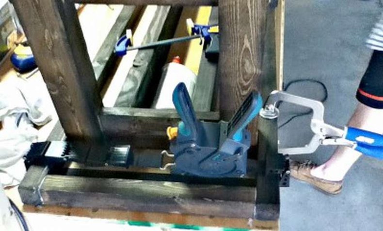 - Взяв трубы по 73 см, их сгибают до 65 см молотком, так получаются ножки, к ним крепят треугольник, так называемую подставку.